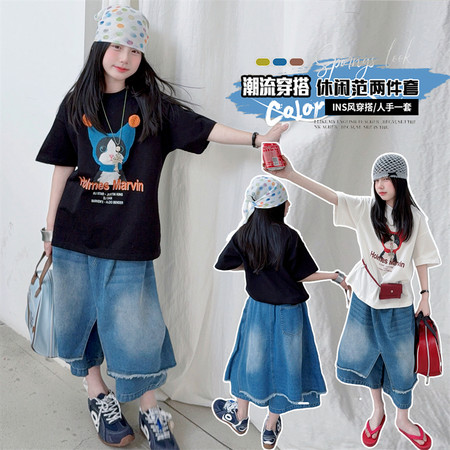 1*9下载视频“2607款猫咪短袖牛仔屁帘裤套装”