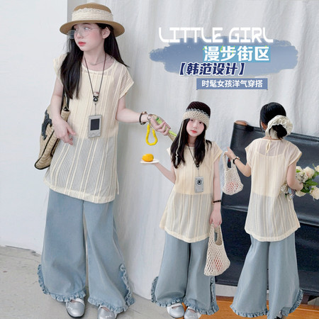 大*蜓下载视频“2608款网纱背心木耳边牛仔裤三件套”